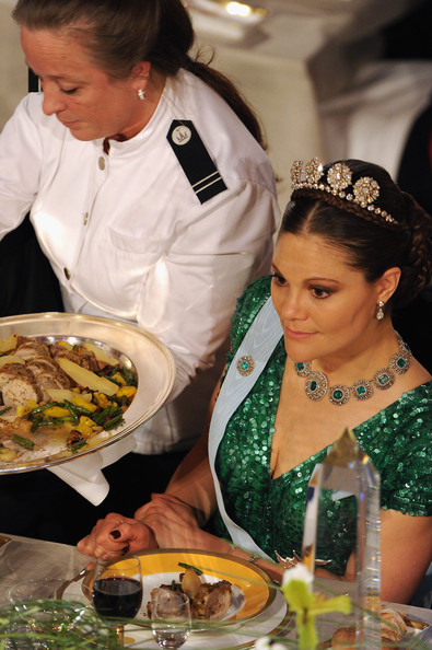 La princesse Victoria portait une nouvelle robe Elie Saab. La princesse Madeleine portait sa robe Angel Sanchez qu'elle avait portée la première fois à la veille du mariage de Victoria, en 2010.