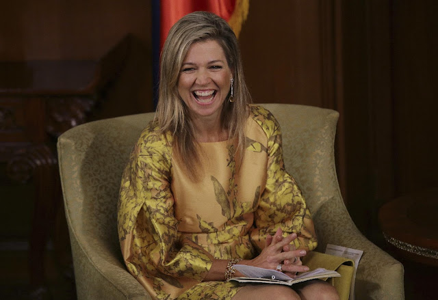 RépondreSupprimerJ'adore la robe jaune doré de Maxima et cela lui va très bien ; par contre, sur la deuxième photo, toujours cette habitude pas très élégante de faire de la pub à son dentiste ! Dommage car c'est une personnalité attachante.