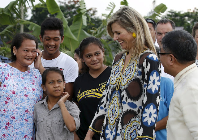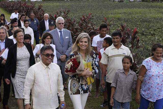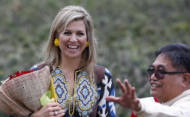 Vie, vite je pique les ballerines jaunes, pour une fois qu'l y en a (des ballerines)... J'adore la robe jaune doré de Maxima et cela lui va très bien ; par contre, sur la deuxième photo, toujours cette habitude pas très élégante de faire de la pub à son dentiste ! Dommage car c'est une personnalité attachante.