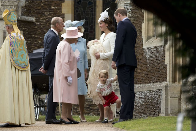 Cet après midi, la princesse Charlotte a été baptisée à l'église Sainte Marie Madeleine, à Sandringham, en présence de la reine Elizabeth, du prince Philip, du prince Charles, de la duchesse Camilla, de la famille Middleton et des parrains et marraines.