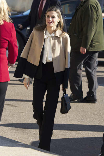 Je n'aime pas les vestes capes ni le genre de chemisier que porte la reine car je trouve que cela vieillit considérablement. En revanche l'association des couleurs me plaît beaucoup.