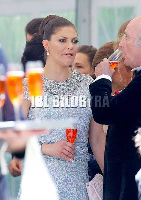 RépondreSupprimerVictoria porte un nouveau style de chignon qui lui va très bien. J'aime moins la dentelle de sa robe, mais cette couleur, bleu très pâle, lui va très bien.
