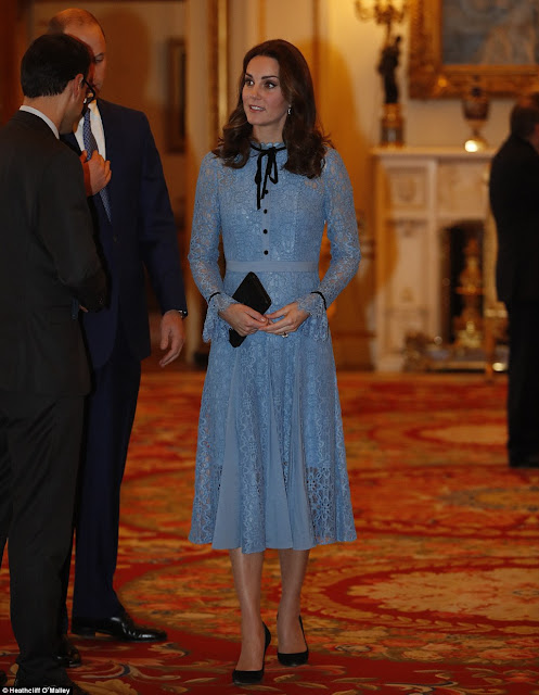 C'est la première apparition officielle de Catherine depuis l'annonce de sa troisième grossesse. Le palais a annoncé qu'elle allait mieux mais qu'elle souffrait toujours de nausées importantes.