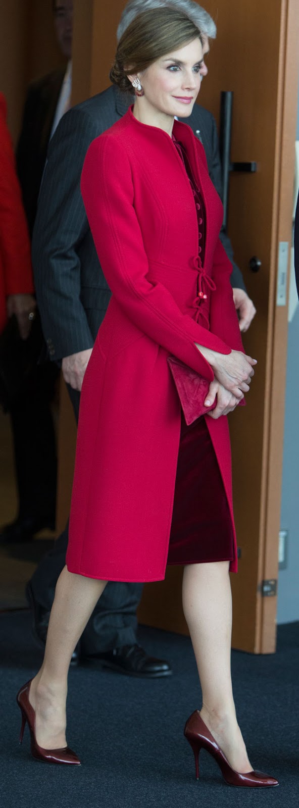 Le rouge va bien à Letizia mais je n'aime pas trop cette nouvelle tenue avec une robe en velours même si elle est adaptée à la visite. J'aurais préféré quelque chose d'un peu plus moderne.