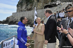 Hier, le prince Albert et la princesse Charlene ont assisté à la plongée en apnée de Pierre Frolla qui avait pour but d'aller récupérer le drapeau à damier qui servira à donner le départ du Grand Prix de Monaco. Ce drapeau a été signé par plusieurs personnalités résidant dans la principauté et sera vendu aux enchères au profit d'une association caritative.