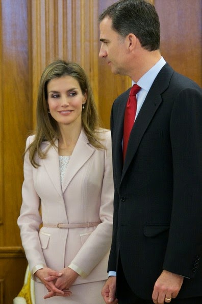 Letizia portait un tailleur FELIPE VARELA et des escarpins MAGRIT.