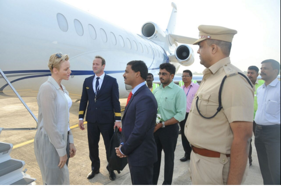 La princesse Charlene est arrivée en Inde hier où elle doit assister samedi au congrès mondial contre le travail des enfants dans le monde et pour leur éducation.